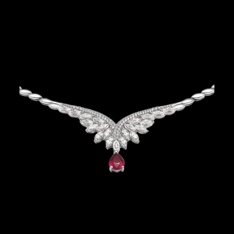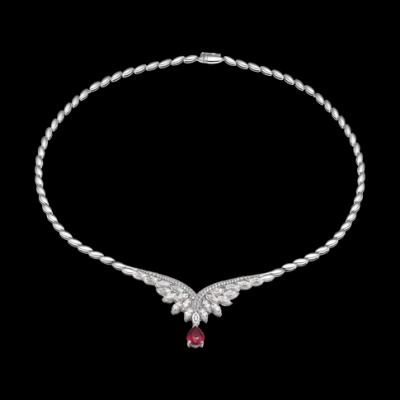 14K White Gold Necklace with Ruby PNJ - Spring Replica