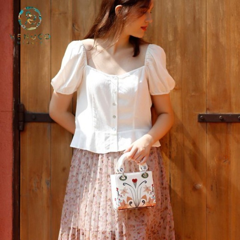 Venuco Madrid F52 Bag - White with Flowers - C05F52
