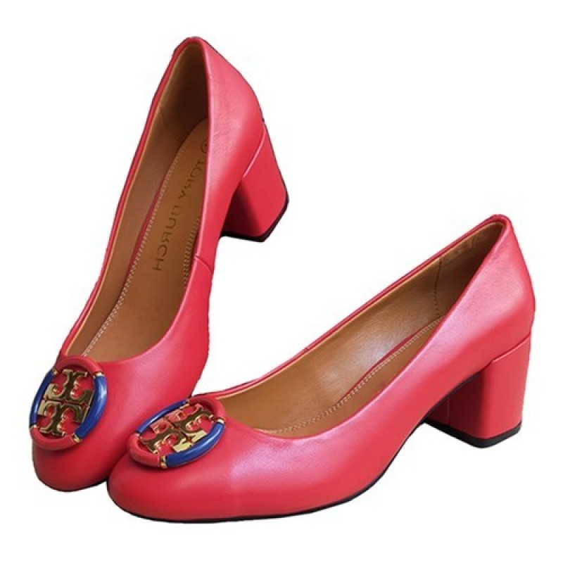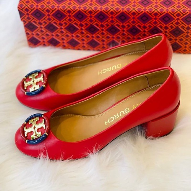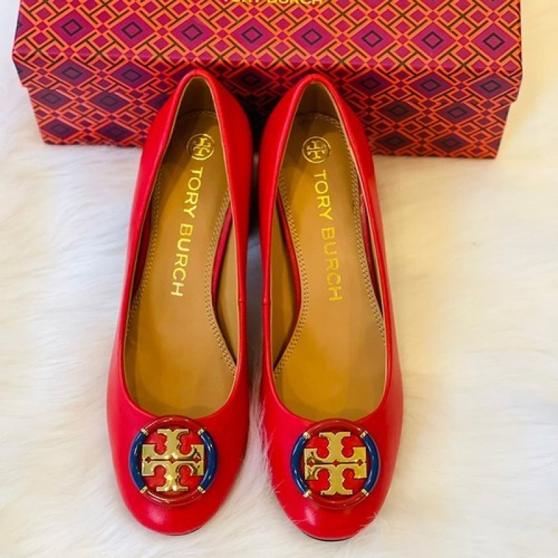 Tory Burch Minnie Ballet With Multi Logo Flats, Red Color