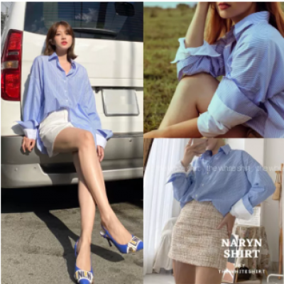 NARYN Shirt - Elegant Striped Long-Sleeve Blue Color