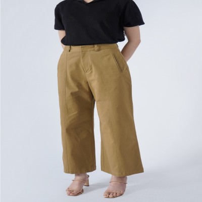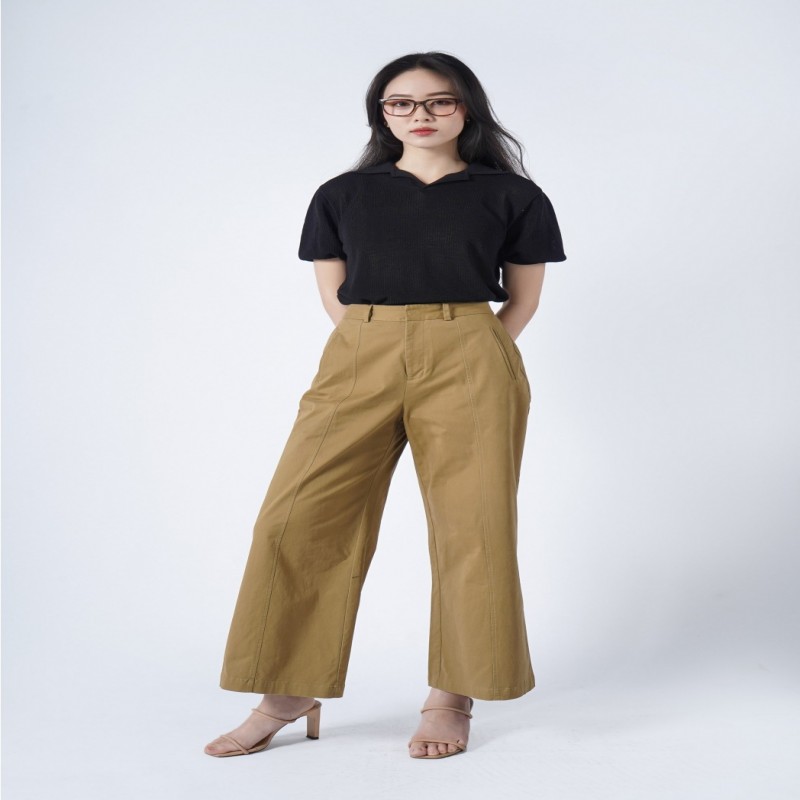 KHAKI COTTON ROUND LOOSE-FIT PANTS - 10S21PCAW005