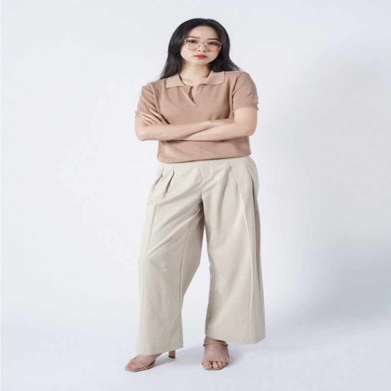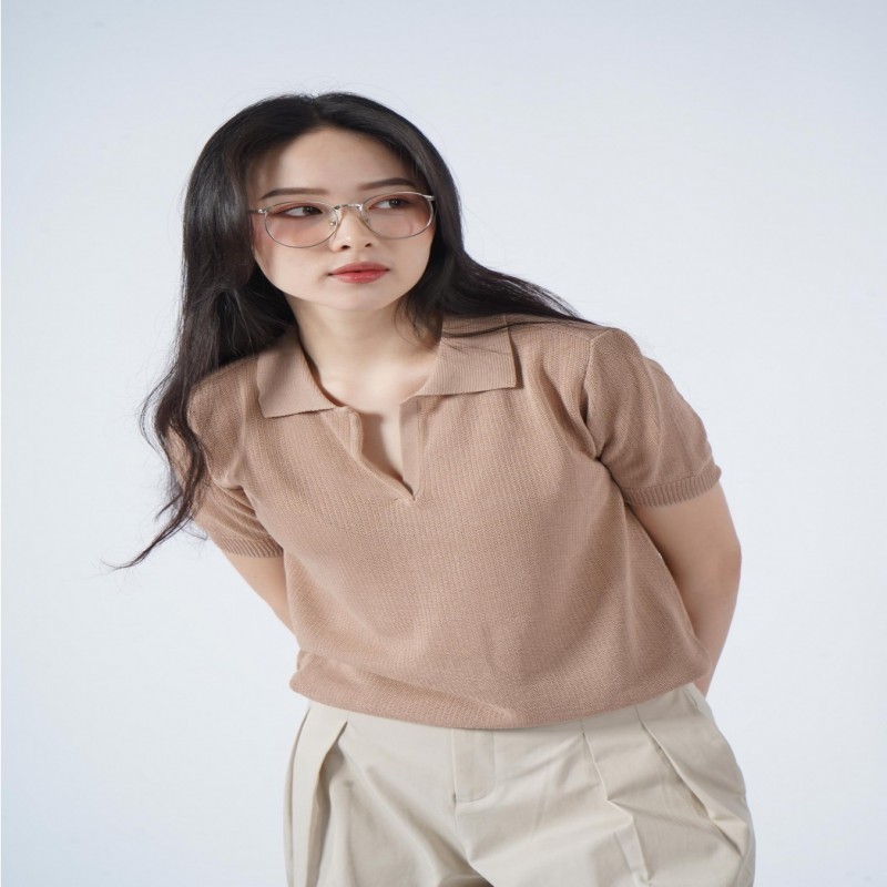 SHORT-SLEEVE V-NECK COTTON KNIT BLOUSE - 10F21KNIW013