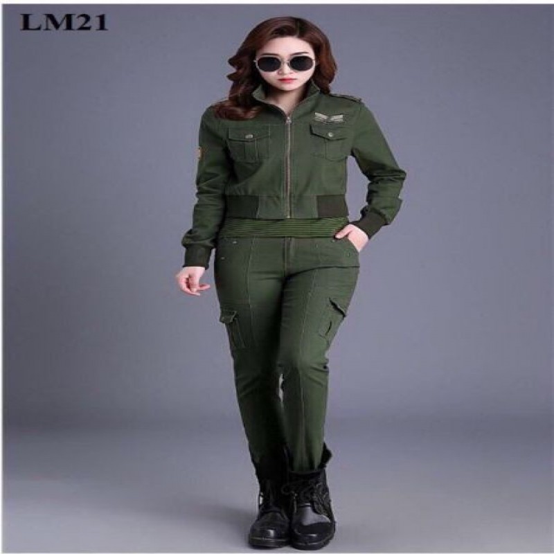 Women's 3-Piece High-Quality Fashion Khaki Military Print Set