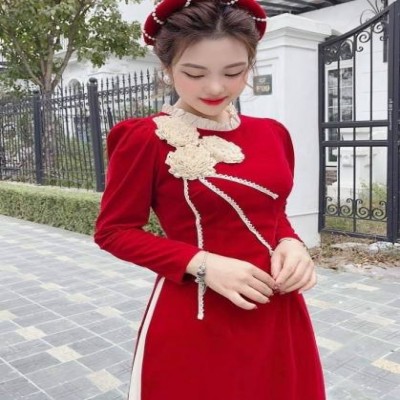 Modern Mother and Daughter Ao Dai Combo with Silk Skirt Gift