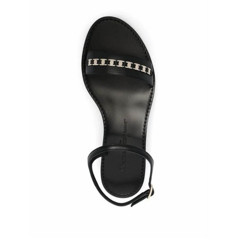 Salvatore Ferragamo Women's 0733859 Black Leather High-Heeled Sandals, Black Color