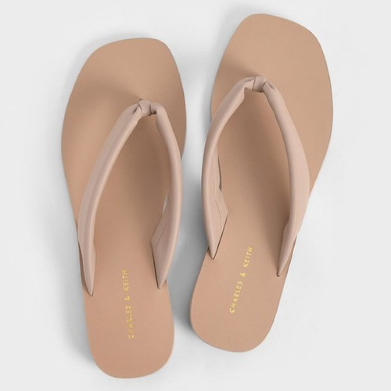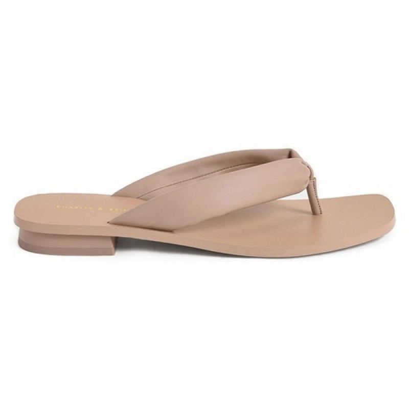 Charles & Keith Puffy Strap Toe Flip Flops CK1-70050137, Nude Color
