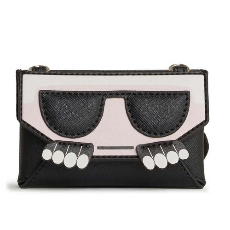 Karl Lagerfeld Peeking Karl Card Case Chain Wallet, Black Color
