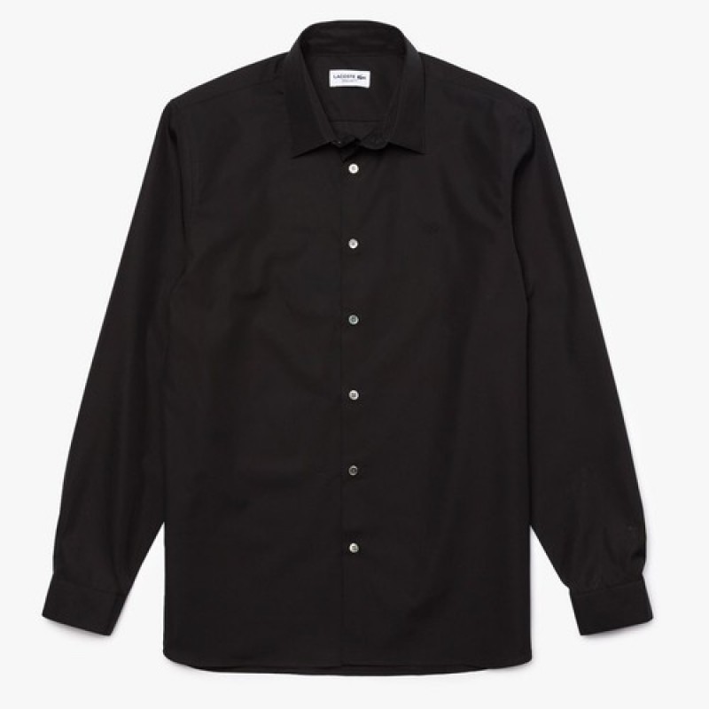 Lacoste Men's Regular Fit Premium Cotton Poplin Shirt, Black Color, Size 41