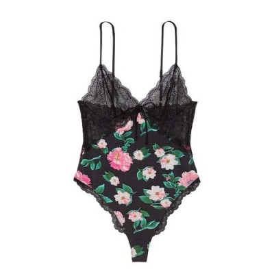 Victoria’s Secret Very Sexy Bodysuit with Bottom Button 132060QD5, Black with Flowers, Size S $85 |